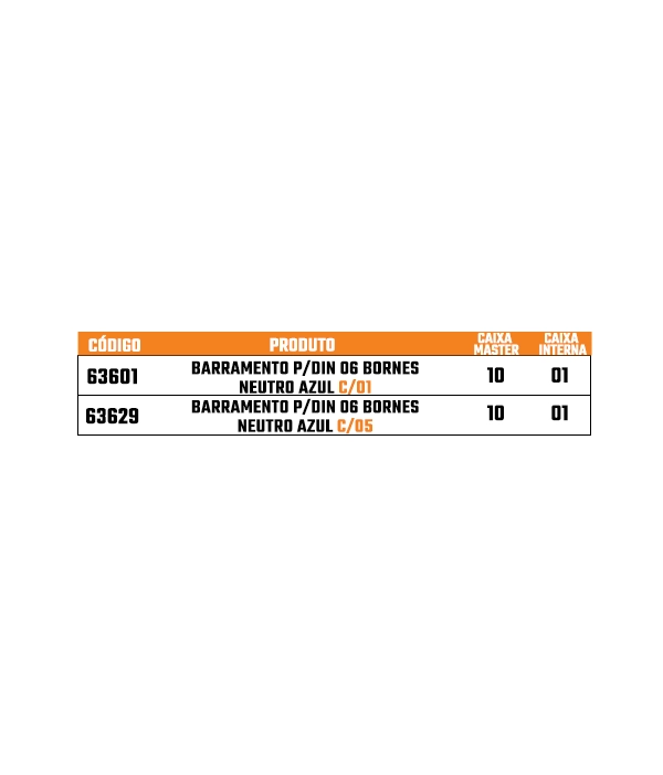 / Barramento P/Din 06 Bornes Neutro Azul