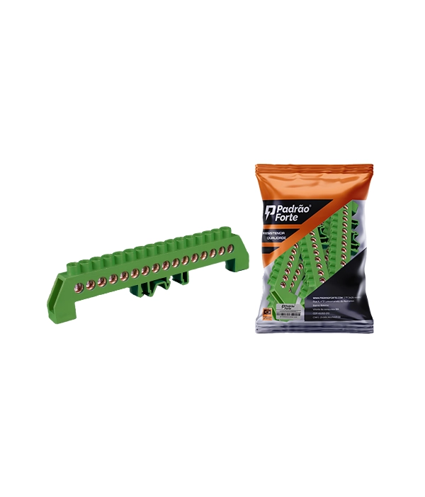Barramento P/Din S/Proteção 12 Bornes Terra Verde