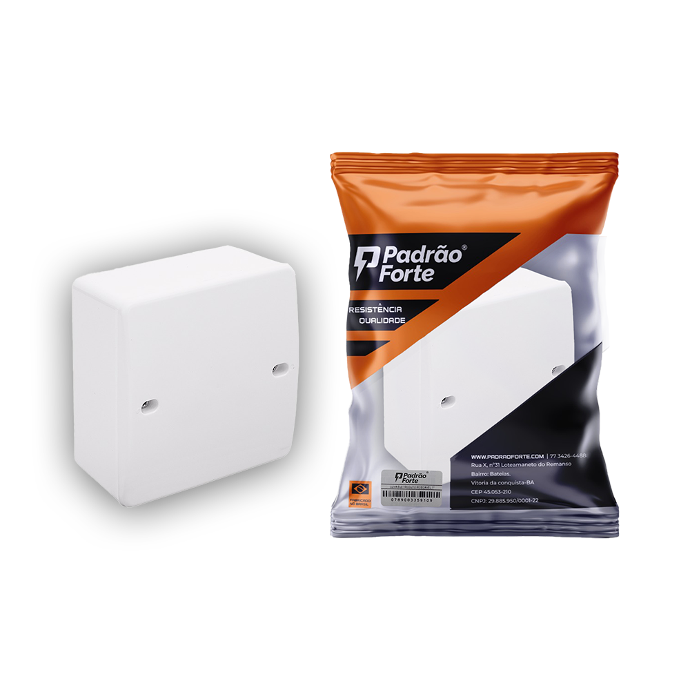 Caixa de passagem de sobrepor 150x140mm com 150mm de comprimento, 140mm de largura e 90mm de altura, ideal para instalações residenciais e comerciais. Fabricada em material resistente com proteção UV e acabamento branco, oferece praticidade, durabilidade e proteção dos cabos elétricos.